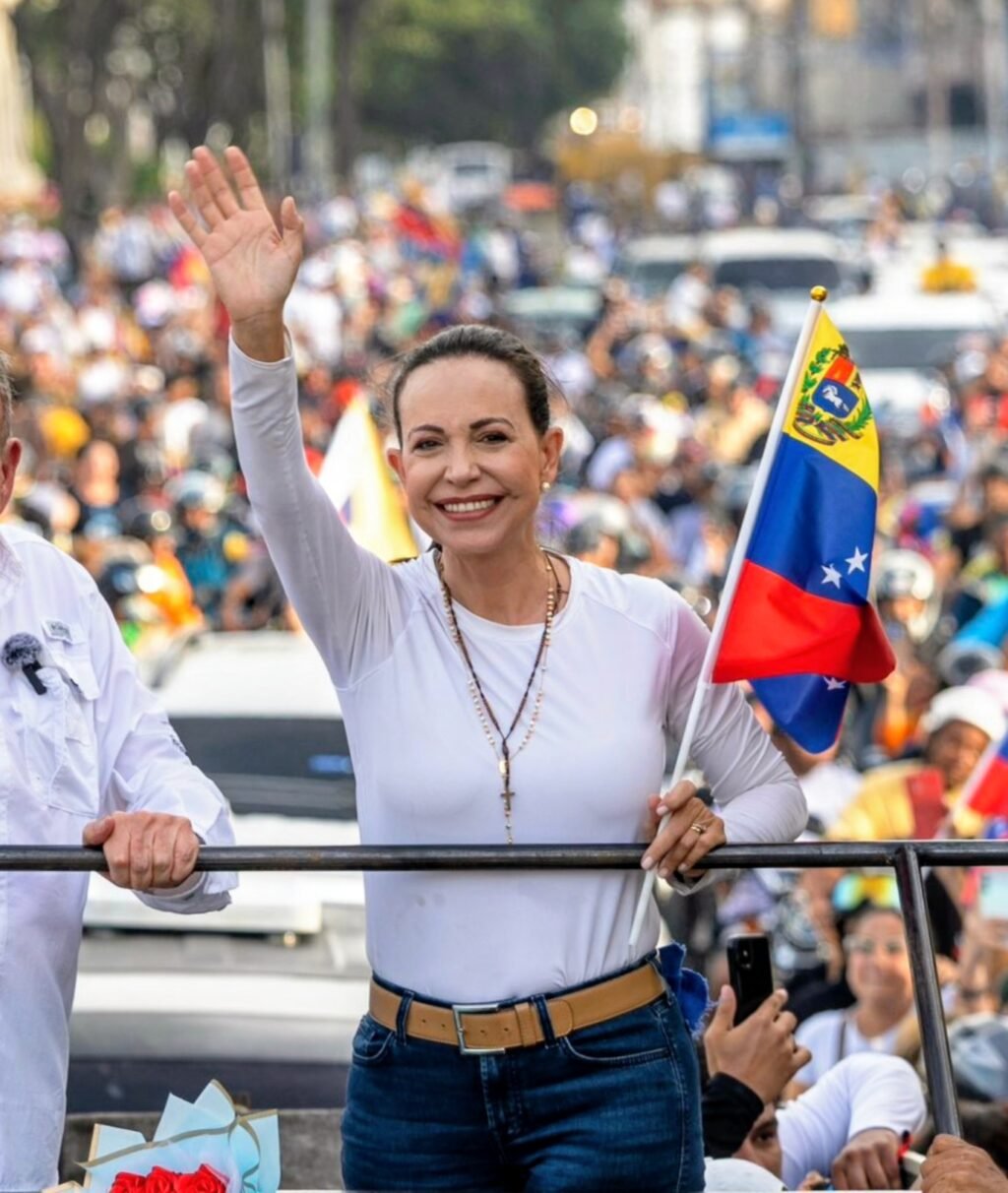Pese a haber sido inhabilitada políticamente, hostigada y amenazada, Machado permaneció en Venezuela liderando un movimiento opositor que promueve elecciones libres y el respeto a los derechos humanos.